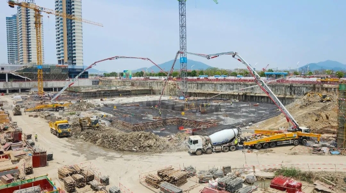 据相识,,横琴科学城(一期)是天下最大的EPC房建项目,,涵盖31栋修建,,用地面积约32.2万平方米,,总修建面积高达116万平方米。。。。。而此次施工更是需要一次性浇筑5000方C35标号混凝土,,这无疑是一场对装备性能与施工团队能力的严肃磨练。。。。。