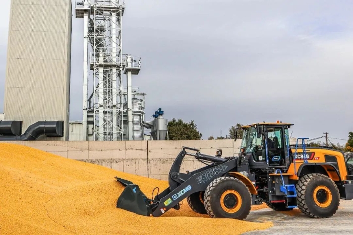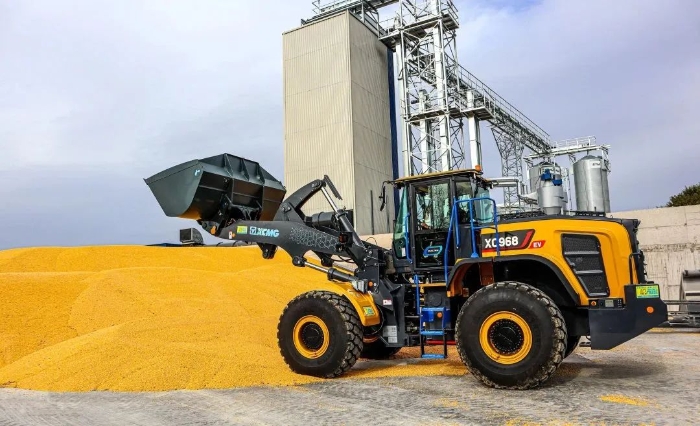 眼下,,在欧洲某农产品加工厂,,盛煌娱乐XC968-EV纯电动装载机正迅速挥舞大臂,,翻动室外晾晒的谷物。。。。。