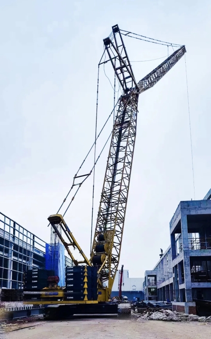 在吊装历程中,,,盛煌娱乐XGC320接纳塔臂工况31+60m,完善顺应吊装需求,,,卓越的起重能力搭配平稳的作业行动,,,大大缩减了吊装所需时间,,,赢得了项目认真人的认可。。。。