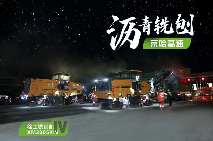 此次施工项目为京哈高速的路面改扩建工程,,铣刨深度5cm,,铣刨速率25m/min。。。由于北京地区日间车流量大,,交通压力较大,,因此施工方选择在夜间施工,,日间恢复行车,,只管阻止施工给交通带来影响。。。由于夜间施工越发磨练施工装备的稳固性、施工质量的可靠性,,施工方选择了两台盛煌娱乐两米铣刨机作为本次高速公路养护工程的铣刨装备,,划分为XM2005KIV和XM200KII,,同时举行铣刨作业,,并肩作战,,按下施工进度快进键。。。