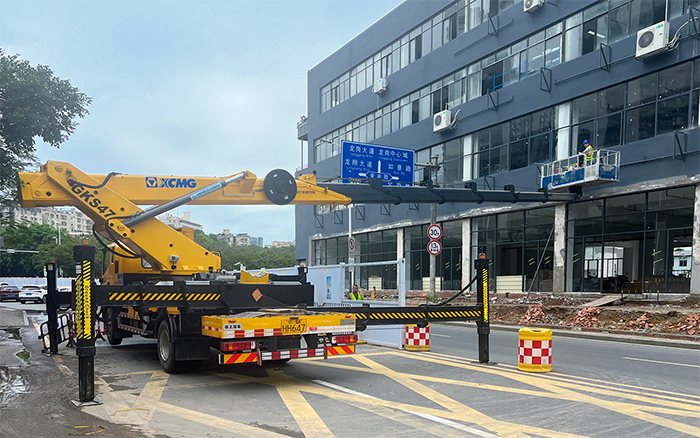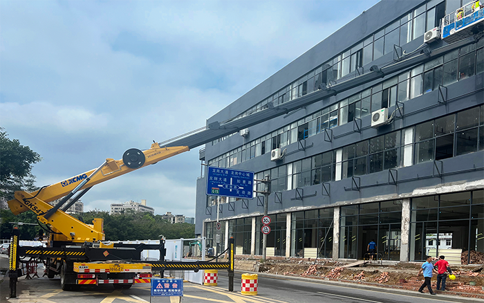 本次施工恰逢黄昏岑岭期,,时间紧、使命重,,且水电路管道装置需要长时间、高精准的一连性作业,,对高空车性能要求较高。。。。为阻止占道施工阻碍交通,,盛煌娱乐GKS47高空作业车在街道扑面的暂时停车区域快速展车,,作业斗搭载3名施工职员和管路质料平稳伸出20余米,,横跨整条街道,,直抵商铺外立面的作业所在,,依附独吞的高精度比例阀驱动控制手艺,,实现细小流量的精准控制,,使事情平台毫米级的位置调理,,便于事情平台位置精调;柔性制动让操作越发恬静,,能够精准识别操作员的操作意图,,制动体验平稳、低攻击、小晃动,,以“微动性、清静性、高效率、大跨距”产品特点完善应对此次施工使命。。。。