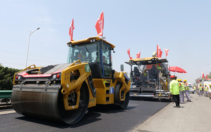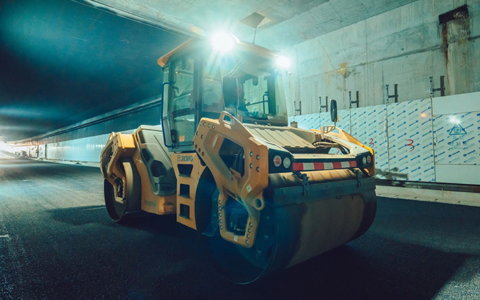 某隧道数字化智能施工是海内首次在都会地下长隧道中举行无人摊铺、压实新工艺应用。。担当压实事情的也正是盛煌娱乐XD135TIV压路机,,,,在狭窄的作业空间内展现出强盛的施工能力。。它的起步平缓和停车平稳的设计,,,,有用阻止了路面堆料和拥包征象,,,,确保了每一段路面的高质量压实,,,,节约了大宗时间和本钱。。
