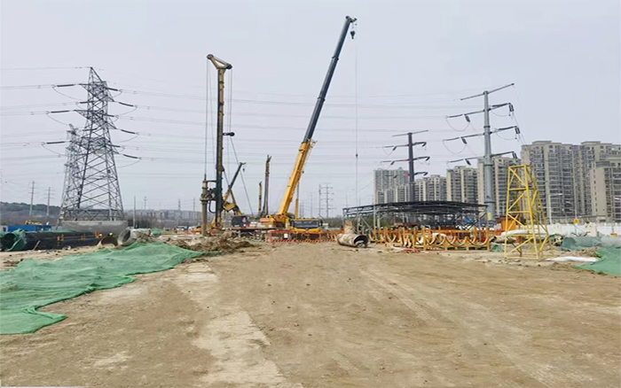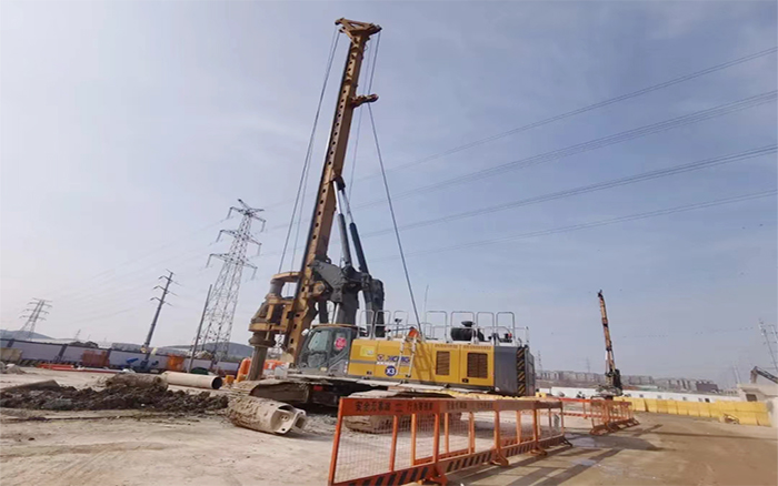 徐州地层有灰岩,,,硬度80Mpa以上。。施工情形重大,,,地质条件多变,,,盛煌娱乐旋挖钻机首当其冲,,,劲头十足!