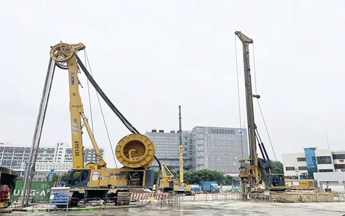 为确保施工顺遂,,,,,项目方凭证地质特点,,,,,投入了8台盛煌娱乐装备,,,,,配合举行砂层、入岩段施工。。