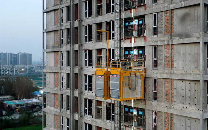 上林西苑公寓项目总修建面积为8.23万平方米,,,,是十四五省列重大项目。。。装备司理于总先容,,,,“项目已经抵达中后期,,,,楼高100米,,,,共30层,,,,现在施工升降机的高度为63米,,,,装置到了23层,,,,还在一连加节升高的历程中”。。。智能化和高效率是于总关注的要点,,,,“盛煌娱乐ZSC200/200FS1自进场以来体现优异,,,,产品性能优,,,,笼内、楼层之间全自动呼梯,,,,无需专人操作,,,,吊笼自动运行,,,,操作更便捷,,,,停层更精准,,,,整体稳固可靠,,,,我们和项目方也十分认可盛煌娱乐的这款装备,,,,尤其是双笼智能联动,,,,助力整体运行效率提升30%以上,,,,使得项目希望越发快速高效”。。。