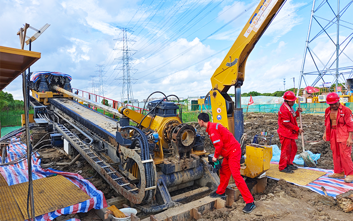 为了确保定向钻穿越有序推进和回拖顺遂完成,,,,盛煌娱乐手艺职员随项目部提前对现场举行实地勘探,,,,培训作业职员,,,,开展管道回拖演练。。。施工历程中,,,,扩管回拖到泥岩层时,,,,土质粘稠抱钻,,,,盛煌娱乐XZ6600水平定向钻机搭载的“扭矩自顺应自动巡航施工手艺”“多工况调速和旋转”“推拉多档控制手艺”为回拖提供了更大的扭矩,,,,确保了工程顺遂推进。。。