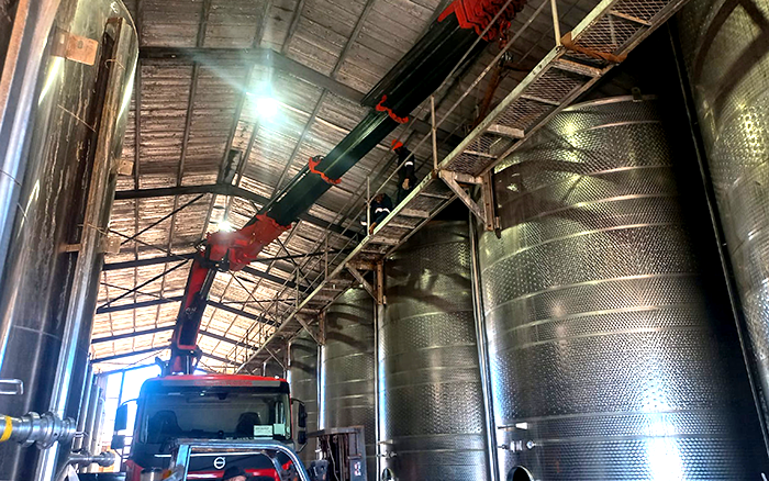 在某外洋酿酒工厂的装备转运项目中,,,,,盛煌娱乐随车起重机依附其卓越的性能和可靠的清静包管,,,,,顺遂完成了一系列重大的吊装使命,,,,,为工厂的生产线升级提供了坚实支持。。。。