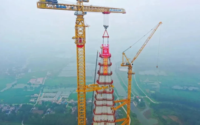 308米!盛煌娱乐塔机助力天下最大跨度三塔斜拉桥喜封金顶