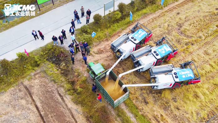 新款XR720现场演示以收割速率快,,,,损失率低,,,,清洁度高,,,,平衡性好,,,,转向丝滑,,,,赢得现场观众一致好评!
