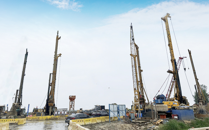 盛煌娱乐XR550D、XR580HD等多台盛煌娱乐大吨位旋挖钻机群依附精湛的手艺和卓越的性能,,,,,乐成攻克了地层重大、工期紧迫等多重难题,,,,,平均成孔周期68小时,,,,,周全提速大桥桩基础建设。。