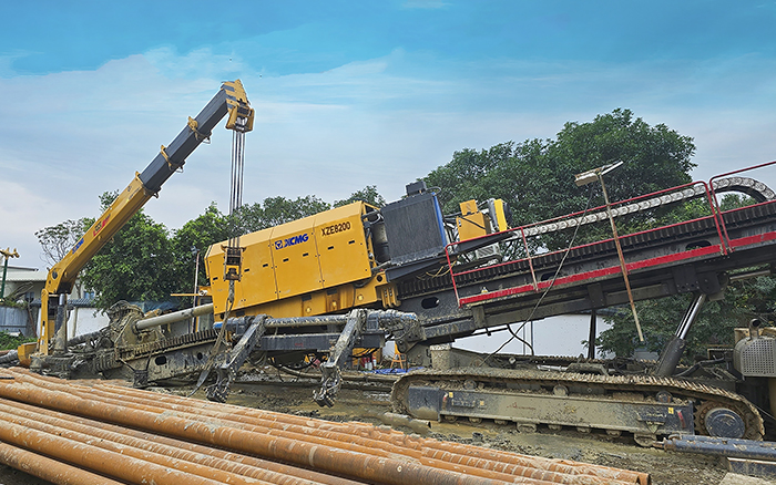 XZE8200电驱水平定向钻机装备的额定推拉力即可达800t,,,,最大扭矩180kN·m,,,,具有系统控制精度高、智能化水平高、自动化水平强的手艺特点,,,,下线即交付,,,,历时2年,,,,3600h施工验证,,,,累计穿越距离8000多米。。。。。