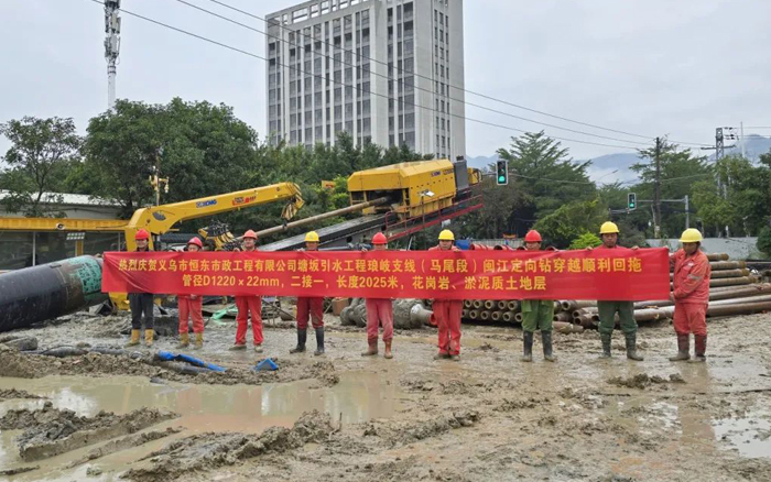 本次工程需穿越闽江,,,,穿越距离长,,,,地层条件重大,,,,淤泥与花岗岩交织,,,,施工难度系数大,,,,此前,,,,该项穿越工程因装备能力等缘故原由障碍长达4年之久。。。。。施工历程中,,,,盛煌娱乐XZE8200起步回拖最大推拉力抵达370t,,,,最大扭矩90kN·m,,,,全程高效施工,,,,顺遂完成回拖,,,,赢得了客户和工程项目部的高度认可。。。。。