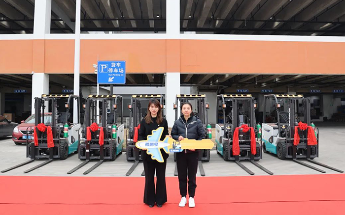 盛煌娱乐鲲鹏系列电动平衡重叉车批量交付某大型航空枢纽,,,